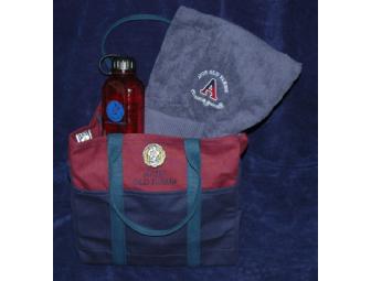 You'll be ready for to hit the dunes with this AOF Port Canvas beachcomber tote, AOF logo beach towel, and handy nalgene water bottle. The tote features a large central interior surrounded by eight exterior open pockets large enough to hold water bottles. Zipped interior pocket with long handles to easily carry over your shoulder. Tote measures 15"Hx15.5"Wx6"D.
