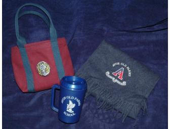 You'll love this adorable Port Canvas tote with the AOF logo, measuring 7"hx7"wx3"d and a beautiful wool scarf embroidered with the AOF logo. An AOF travel mug completes the package.