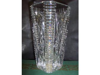 This crystal vase is octagonal in shape and 7 inches high. It is hand cut and signed by the artist Bill Healy. This vase is produced with the highest quality of crystal.