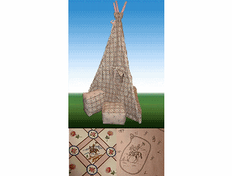 Have a powwow and a tea party in this enchanting child's teepee. Made of sturdy pink fabric with a "cowboy" motif, the teepee measures approx. 4' across and 5.5' high and comes with two 12"x12"x6" matching square cushions.
