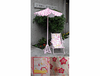 Darling children's beach or lawn set in pink floral fabric. Imagine lounging in the garden or having a picnic by the sea with this charming pair.