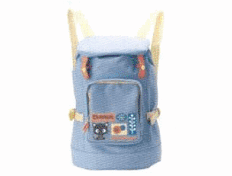 "Chococat Tapestry" pattern on tough blue vinyl, this super cute backpack is the purr-fect accessory.