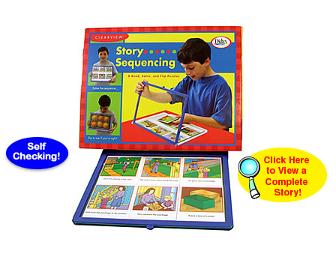 This irresistible activity for early readers develops sequencing and comprehension skills. You get it all - a durable activity folder, eight complete stories (six cards with text and pictures), eight full-color picture answers, and an instruction guide. Children try to put the story cards in order. They can check their answers by flipping over the folders to see the pictures. If correct, the pictures are complete. Plastic activity folder is write-on / wipe-off for additional activities. For grades K-2.