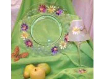 Dress up your summer table with this elegant handpainted tray and candle lamp.