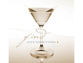 Authentic Maine-made potato basket with bottle of Cold River Vodka, etched martini glasses and engraved shaker.