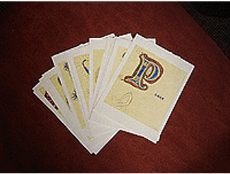 Each card has a print of one of the third grader's illuminated letters and message (you can check out the originals outside their classroom), for 24 in each set. This is one of only five available sets of postcards (measuring 4.5" x 5.5").