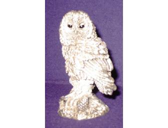 A unique and highly detailed owl sculpture made with filled silver (4" tall x 2 1/2" wide).