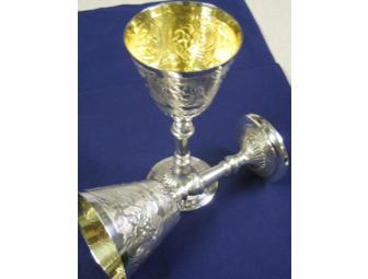 Traditional and beautiful, this pair of English, sterling silver, Jacobean design reproduction wine goblets is from Firestone and Parson Inc., one of Boston's foremost purveyors of antique and estate jewelry and fine silver.