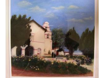 Memories of a California vacation---or just a lovely addition to brighten up a room. Entitled 'San Juan Bautista Mission'. 16 1/4" X 16 1/4", matted and framed, ready to hang.