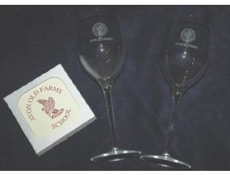 For the best dressed table, four goblets etched with the Avon Old Farms seal and school name. These goblets are exclusive to the AOF Parents Association auction.
