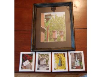 This is a framed, matted and titled photo and set of 4 greeting cards from Julie Loose's Roscoe Village Birdhouse Series. All photos taken in Roscoe Village.