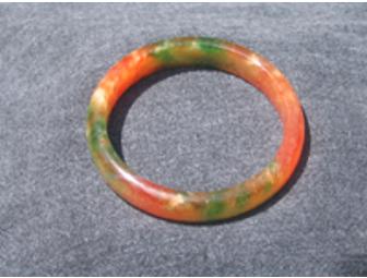 Authentic Chinese round Multi-Colored Red & Green Jade wrist Bangle. Unusal and very pretty. You won't see this around town on anyone else. Approx. 6-1/2 to 7".