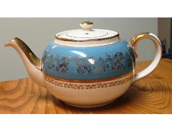 Remember when your Mom invited her lady friends over for tea? This is one of those lovely teapots used during this time. Made in England in the early 1900's, this teal teapot also features gold work.