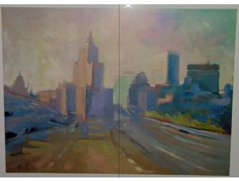 An oil painting by artist Marjorie Ball portrays the approach to Providence from I95 North.