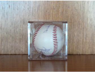 Autographed Baseball by Brooklyn Dodgers' Hall of Famer Duke Snider, former pitcher Ralph Branca, Carl Erskine, and former pitching coach, Dave Wallace.