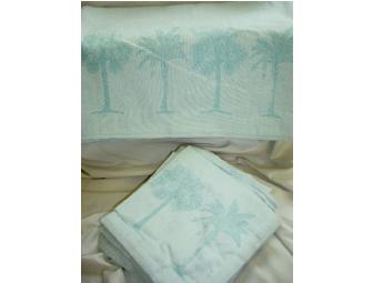 You will know that summer is truly here when you use these light blue cotton Jacquard placemats and napkins. Pretend you are in Hawaii with the palm tree motif.