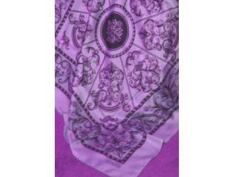 This 100% silk scarf in soft violet and grey tones conveys an understated elegance with a classic motif. From Carlisle, the premier direct fashion company in the U.S.