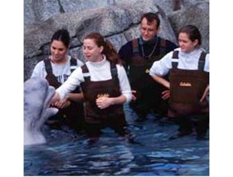 The Mystic Aquarium Institute for Exploration has offered one lucky person the opportunity to have a close encounter with one of these magnificent marine mammals. The program begins with a 20 minute orientation followed by a wonderful, hands-on 20 minute session with the whale where you can touch the whale and learn hand training signals. A wrap-up session completes this once-in-a-lifetime experience.