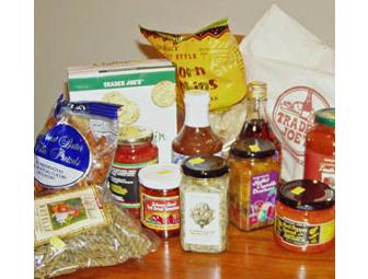 Enjoy an assortment of goodies from Trader Joe's in a reusable grocery bag.