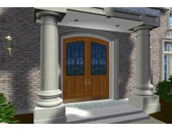 Hardware for two doors to include decorative handle and deadbolt for each door. May also include decorative hinges and door-knocker. Up to $750, including labor.