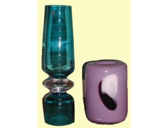 Decorate your home with these beautifully crafted glass vases. From Kosta Boda, receive a unique lavender vase to display your favorite bouquets. And from Marquis by Waterford, an ice-blue creation to liven up any table.