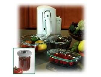 The VacuWare FreshStation is an innovative device that eliminates the labor and guesswork in vacuum sealing your food! The FreshStation removes the air from your container, locks in the freshness, and lets you know when the process is complete! Visit www.vacuware for more information.