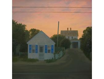John Dowd's work is a synthesis of his interests in the light of the Luminists, the sense of place of the American Realists, and the moodiness of the German Romantics. Distinguished by an absence of people, his paintings primarily depict the structural features of the landscape. His art evokes the "quintessential" Cape Cod. "West End at Twilight" is an original, signed oil painting.