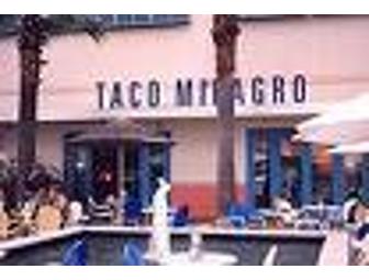 Taco Milagro is a classy cocina decorated in the rich, warm colors of old Mexico, and featuring a breezy patio, live music, and a menu faithful to its roots. The tender skirt-steak tacos, traditional tortilla soup, plump pablano peppers, and sweet potatoes with Swiss chard enchiladas, are right out of interior Mexico. Surprise your taste buds with the succulent barbacoa de puerco, roast pork rubbed with adobado, wrapped in banana leaves, slow cooked, and served with the earthy Milagro Mole sauce.