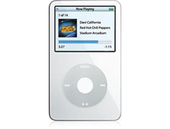 30GB: 7,500 songs; 2.5 inch color display; 4.8 ounces; White in color; comes with earphones, USB 2.0 cable; dock adapter; case; quick start guide included.