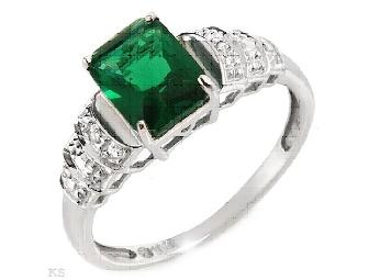 1.51 ctws Diamond and Lab Created emerald st in 10 K white gold. Size 7