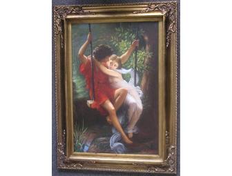 This gorgeous painting by Burford Evans is approximately 32 inches wide & 45 inches tall and comes with antique finished gilded frame.