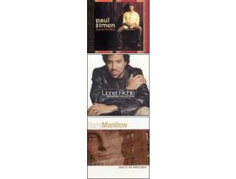 Includes signed copy of Barry Manilow's "Here at the Mayflower" and unsigned copies of Ultimate Manilow, Lionel Ritchie's "The Definitive Collection and Paul Simon's "You're the One".