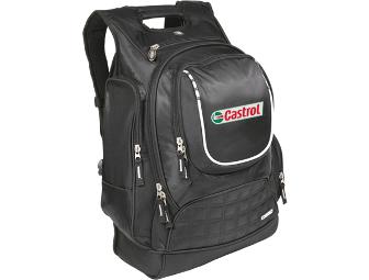 This backpack offers padded side-entry laptop sleeve, dedicated accessory storage and a fleece-lined audio pocket. Behind its distinctive quilted half-moon pocket is additional fleece-lined storage for a mouse, power cord, and other tech gear.
