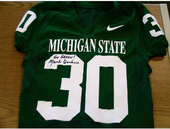 Game worn Jersey autographed by Spartan coach Mark Dantonio