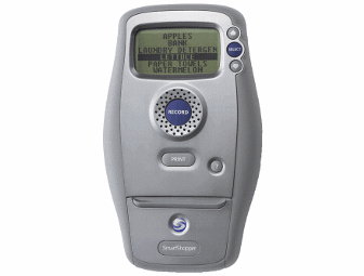 Say it, print it, go get it! The SmartShopper is an easy-to-use electronic device that helps you make your grocery list. Adding an item to your list is easy. Any member of the family can simply press record and speak the name of the item or items you wish to add to your list. Press Print, and SmartShopper prints your list categorized by grocery departments such as “frozen foods” or “produce.” It’s that easy!
