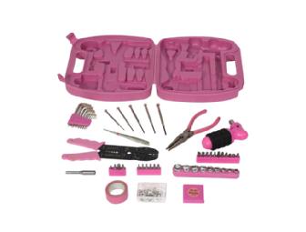 This 87 piece set from Ladies Tools Online contains the essentials for completing simple electrical work or adding wires to the back of picture frames. Also use the socket wrenches to tighten all shapes and sizes of nuts and bolts. With its HOT PINK case, everyone will know that this tool kit belongs to you.