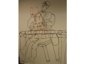 This 79X66X18" copper and bronze wire sculpture is professionally crated and ready for shipment. A perfect addition to any pathology department or appreciative afficionado's collection. Sure to evoke a whimsical smile each time one passes it by. Artist, Christian Gehrquist is a regionally well known wire atist and has shown in many regional art fairs and exhibits. He is a graduate of Marlboro College.