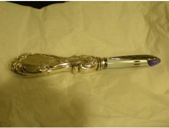 Join the exclusive club of those who own a Heritage Silver Pen. Just show this pen and everyone, from the mailroom to the Board Room, including the stockroom the classroom and the washroom, will admire and covet it, envy you, and want to know where you got it. We make these pens individually and by hand, generally from the hollow knife handles of antique sterling silver table settings, and are available only from us. Each of the pens is unique and, when made up, weighs and handles very much like the $450 Mont Blanc Meisterstruk pen.