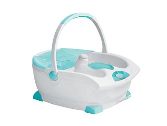 Pamper your feet and bring home the true spa experience with this salon footbath. It's got an easy tote handle, sensuous sea grass and five salon attachments which include dry heel reducer, stone pumice, finishing pumice, nail brush and nail buffer. The controls are "toe-touch", the footbath is super quiet and has double the bubbles to soothe tired feet.