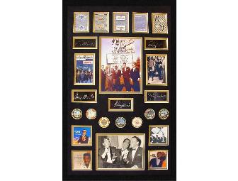 The "Rat Pack" is the name given to a group of some of the most famous entertainers of the mid 1950's through the 1960's. The Rat Pack's lineup featured none other than Frank Sinatra, Dean Martin, Sammy Davis Jr., Peter Lawford and Joey Bishop. The five of these gentlemen set their mark in history by performing alongside one another in various films and onstage performances. This limited edition Rat Pack Masterpiece Collage comes professionally double-matted and framed and features actual Las Vegas casino chips and cards from hotels past and present, including some the group played at, such as the Sands. Certificate of Authenticity included.