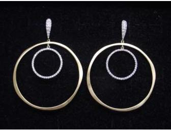 14Kt White & yellow gold diamond earrings. Double circles with 0.45 ctw of diamonds.