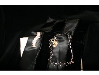 Kathy Flahavin & Associates black silk and sik velvet stripe scarf , link/juicy necklace and barrett