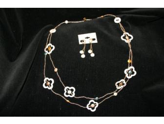Kathy Flahavin & Associates gold and shell beaded flower shaped necklace + earrings