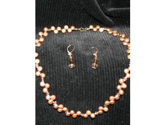 Coin pearl and Swarovski crystal necklace and earrings