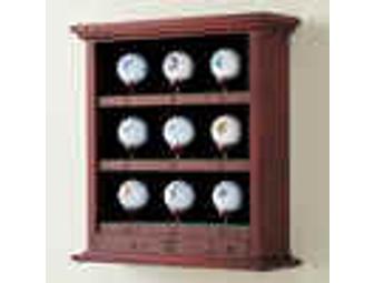 For the committed golfer! This wooden display lets you showcase your most memorable games with nine custom audio messages. This handsome wooden case holds nine golf balls and lets you record a message for each. "I got a hole in one!" or "Finally broke 80." Records a 19-second message for each ball. Internal memory saves recorded messages for up to 99 years without power or batteries. Lockout switch prevents accidental erasure. Handsome wood construction.