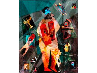 This lovely work of art will look stunning in your home! Local artist and SF BHDS parent Bruce Hasson created this dramatic painting, "Moses' New Face" in vibrant shades of orange, yellow, teal and black. It depicts many facets of judaism and compels the viewer to keep returning to it, finding something else to admire with each new look.