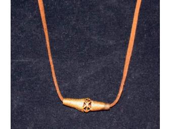 African brass on brown suede with gold fill clasp. Necklace made by Batel. Perfect for Bar/Bat Mitzvah gifts!