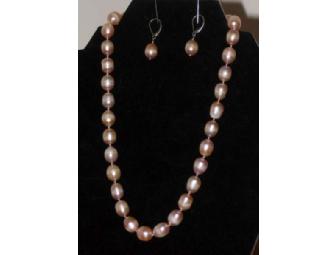 A Fresh Water Pearl Necklace & Earrings to Match (Light Pink)