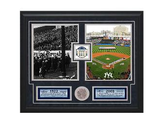 This 16x19 framed collage of the first opening day in 1923 and the last opening day in 2008 of the original Yankee Stadium is something every Yankee fan needs. This great collage comes with 2 8x10 photos of the first and last opening days at the Stadium. Beneath each photo is a nameplate commemorating the years of both. The collage also includes dirt used during a game at Yankee Stadium. This great piece comes double matted with Yankee blue and white and is complete with a black frame. A Yankee Steiner Certificate of Authenticity is included.