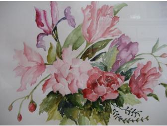 Enjoy these beautiful watercolor flowers, framed and matted. This artwork was done by watercolor artist Helen Greenberg, who is Julie Droller's mother! Thank you Ms. Greenberg!